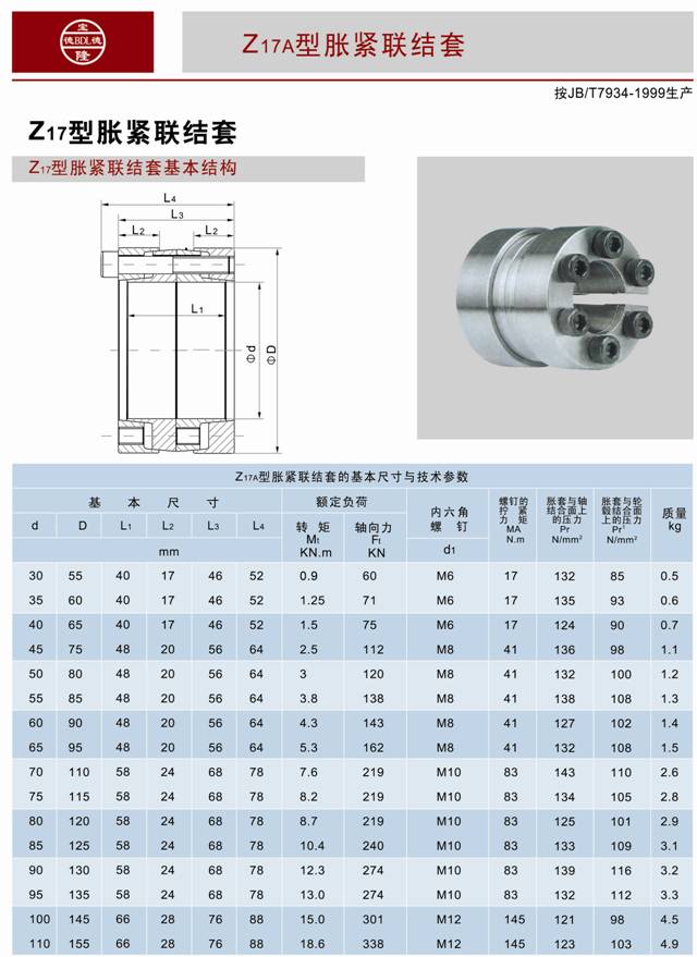 您当前的位置:首页 / 产品展示 / 胀套系列 / Z17型胀紧联结套 / Z17型胀紧联结套(胀套)